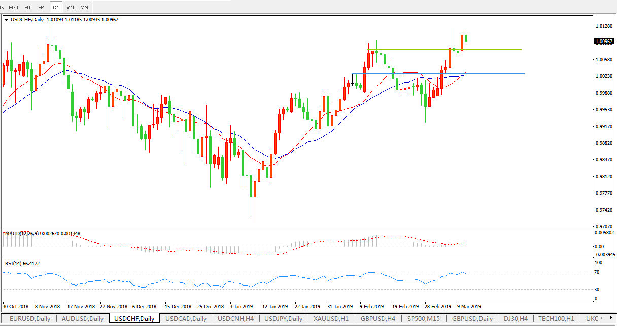 基本面分析:美国1月零售意外上升,但难改变对一季度经济活动明显放缓的预期;① 美国1月份零售额出人意料地上升,主要是由于建筑材料和可自由支配开支的购买增加,但12月份的收入比最初预计的要弱得多;② 12月的数据被修正为下降1.6%,而不是之前报告的下降1.2%。去年12月是自20099月以来的最大跌幅,当时美国经济正在摆脱衰退;③ 向下修正12月份的核心零售额,可能会影响政府对第四季度GDP的估计。政府上个月公布的数据显示,2018年最后三个月的经济年增长率为2.6%;④ 经济学家们相信,在政府本月晚些时候发布修正后,第四季度GDP增长预期将被下调;1月份核心零售销售的反弹,可能不会改变人们对一季度经济活动明显放缓的预期。美元指数小幅度下行,美瑞受英国脱欧时间的不确定性影响,一度上破1.0100,整体维持上攻态势。