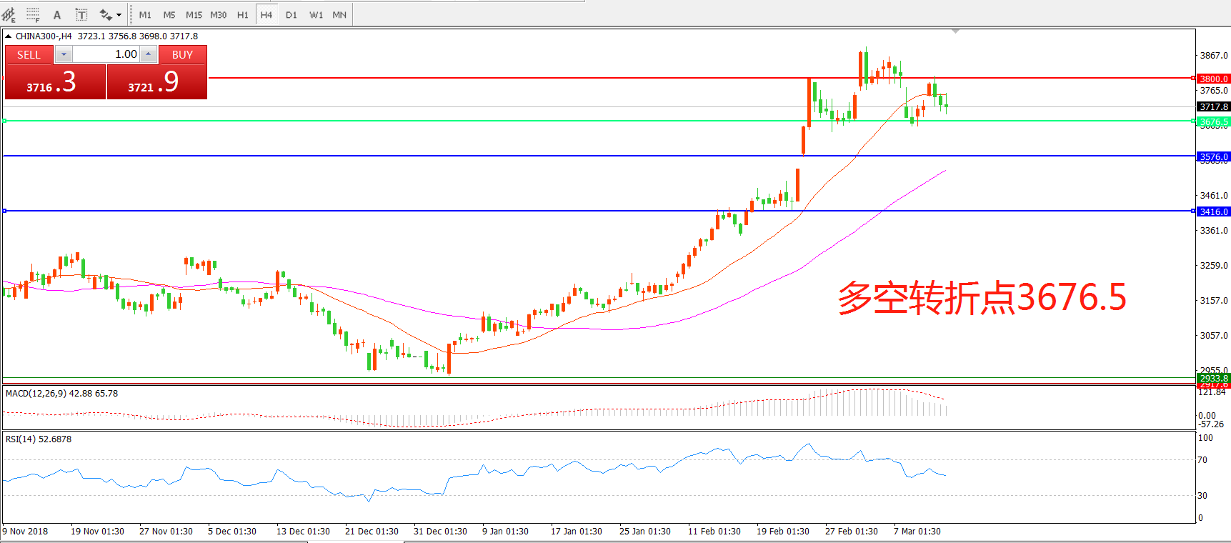 交易策略 在3676. 5之上看涨,目标3800.00 3892.00