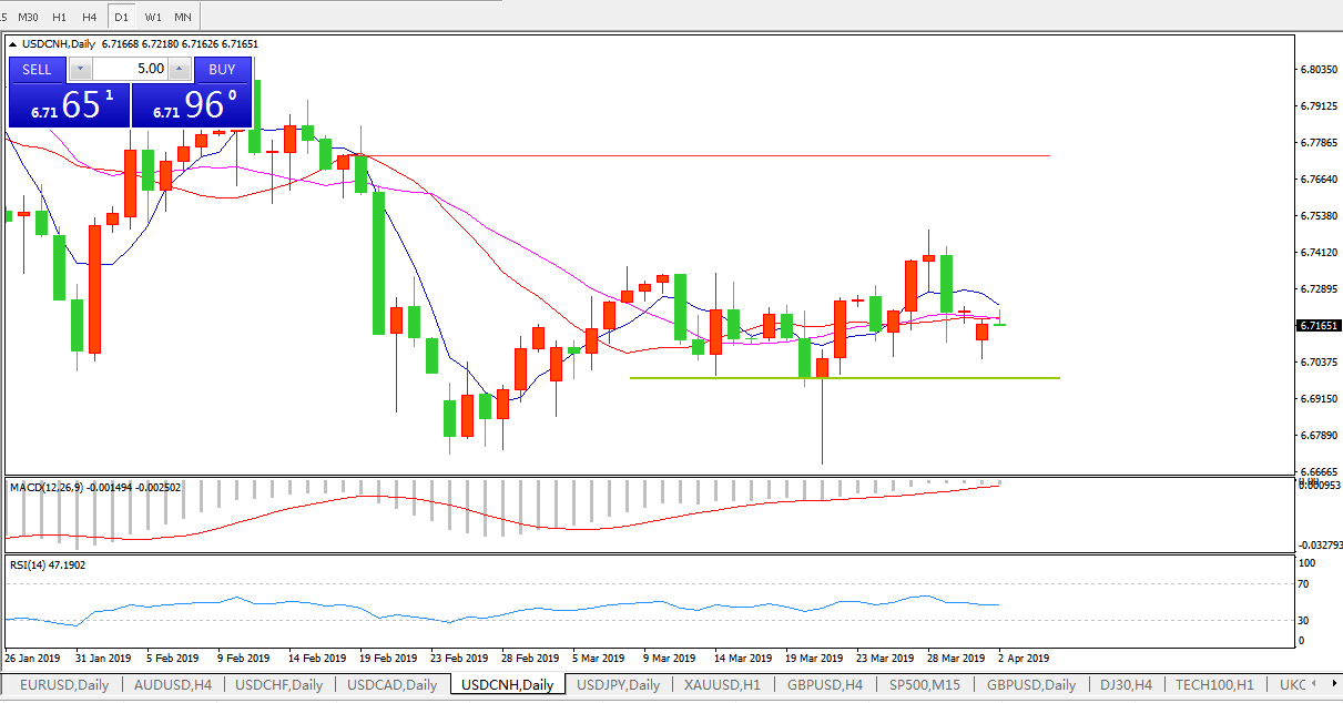 技术面简析:日线均线粘合无方向MACD0轴附近徘徊且动能柱量能萎缩RSI缓步走低,汇价企稳多空转折区域开始整理,短期走势或取决于中美经贸磋商最新进展。