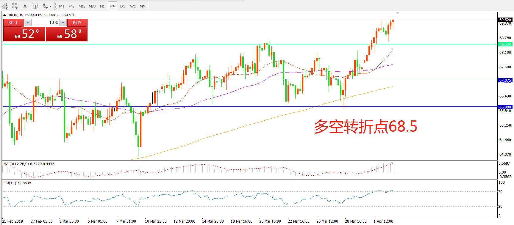 多空转折点:68.50