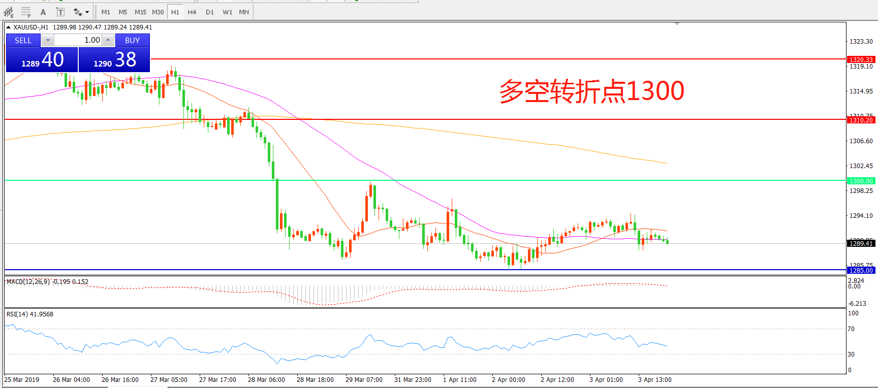 美国3月ADP就业人口仅仅增长12.9万,创下2017年9月以来最低,且几乎所有部门就业人数都出现下降;除了ADP之外,随后公布的ISM非制造业指数也逊于预期。此外据外媒报道,去年年底有一小段时间,美国总统特朗普一度考虑替换美联储主席鲍威尔。但美元指数并未因此沉沦,反而自低位反弹,现货黄金周三(4月3日)冲高回落,美市盘中最低下探至1287.95美元/盎司,随后震荡重回1290附近,近期走势困陷于窄幅区间,静待破局动能。周五非农或成短线走势胜负手。