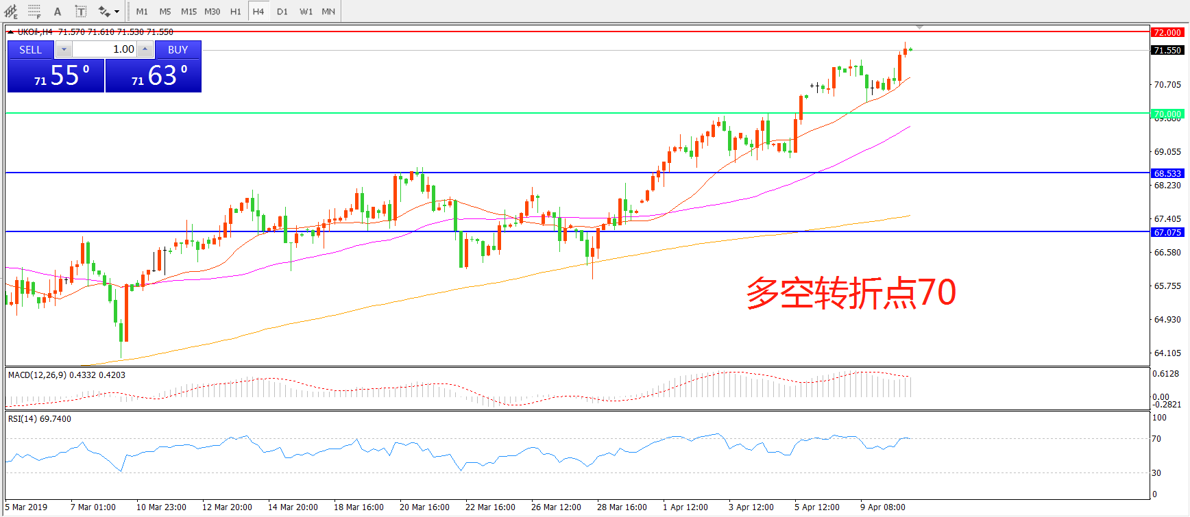 交易策略:在70.00之上看涨,目标72.00    74.50