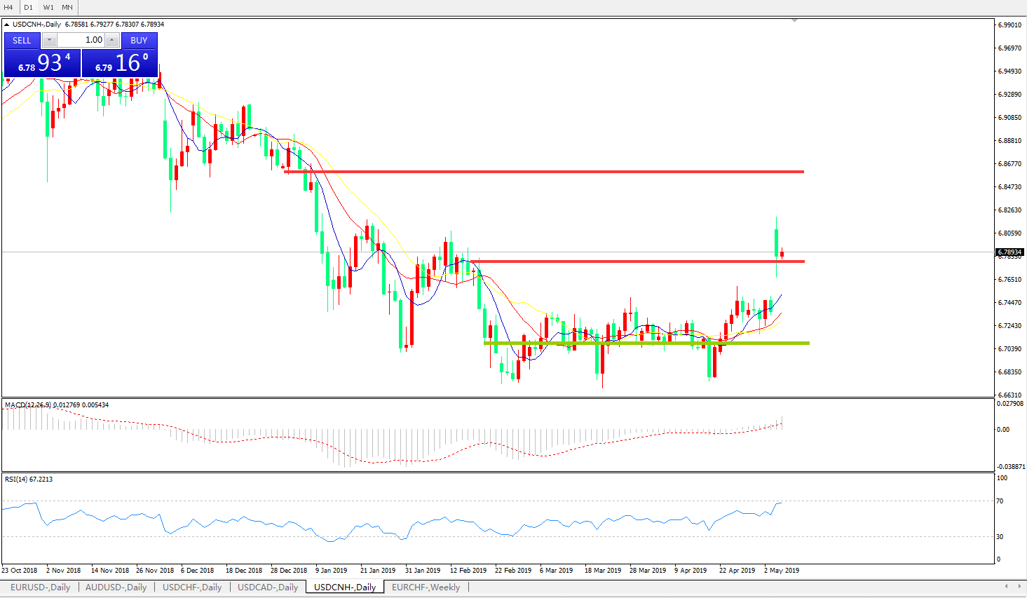 技术面简析:日线图均线呈有序多头排列看多,汇价高开后小幅度回踩整理,MACD上穿0轴且动能柱0轴上方快速放量,RSI急速走升,汇价击穿上方压制继续上行,预计短期汇价或存在整理可能,中期不排除有进一步上行空间,重点关注中美贸易谈判最新进展及特朗普推特更新情况。