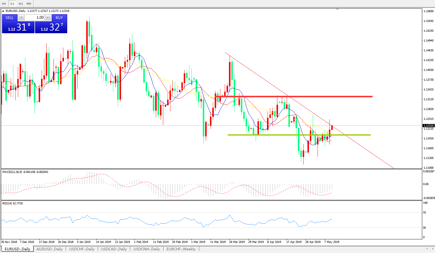 欧元兑美元EURUSD   日线图: