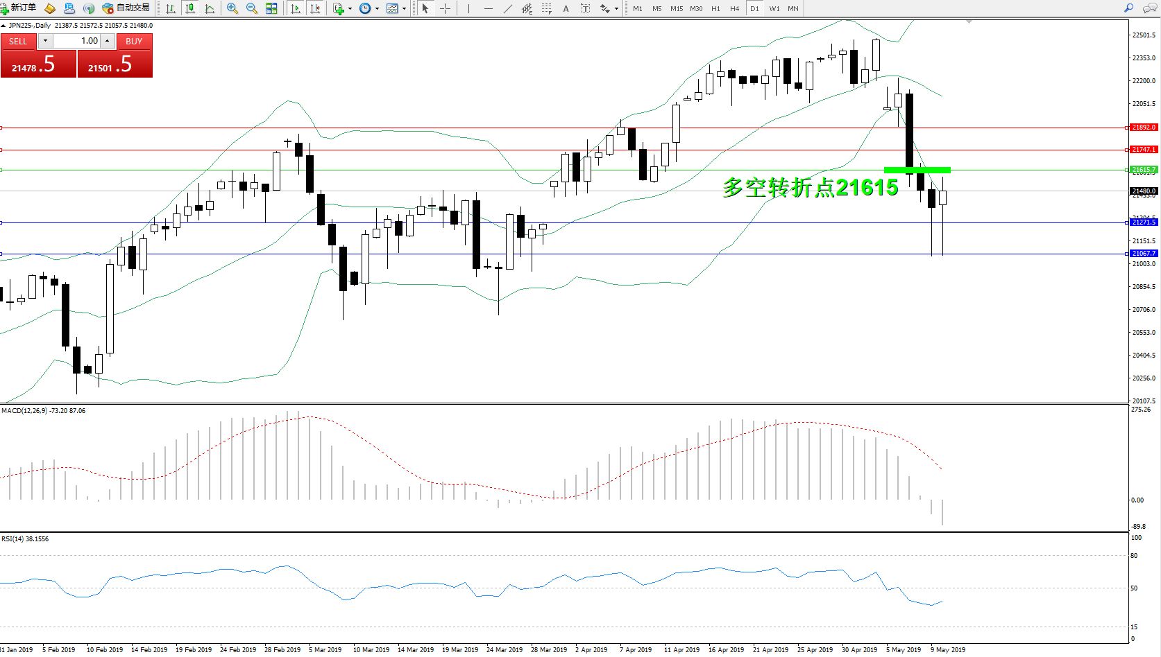商务部确认美方对华加征关税,美方已将2000亿美元中国输美商品的关税从10%上调至25%,中方对此深表遗憾,将不得不采取必要反制措施。第十一轮中美经贸高级别磋商正在进行中,希望美方与中方相向而行、共同努力,通过合作和协商办法解决存在的问题。日本股市日经指数上周五录得逾四个月最大周线跌幅,靴子落地,出口依赖型亚洲经济体将愈发受到冲击。日经指数.N225收跌0.27%至21,344.92点,连续第五个交易日下跌。周线跌4.1%,为2018年12月21日当周录得5.7%的跌幅以来最差单周表现。