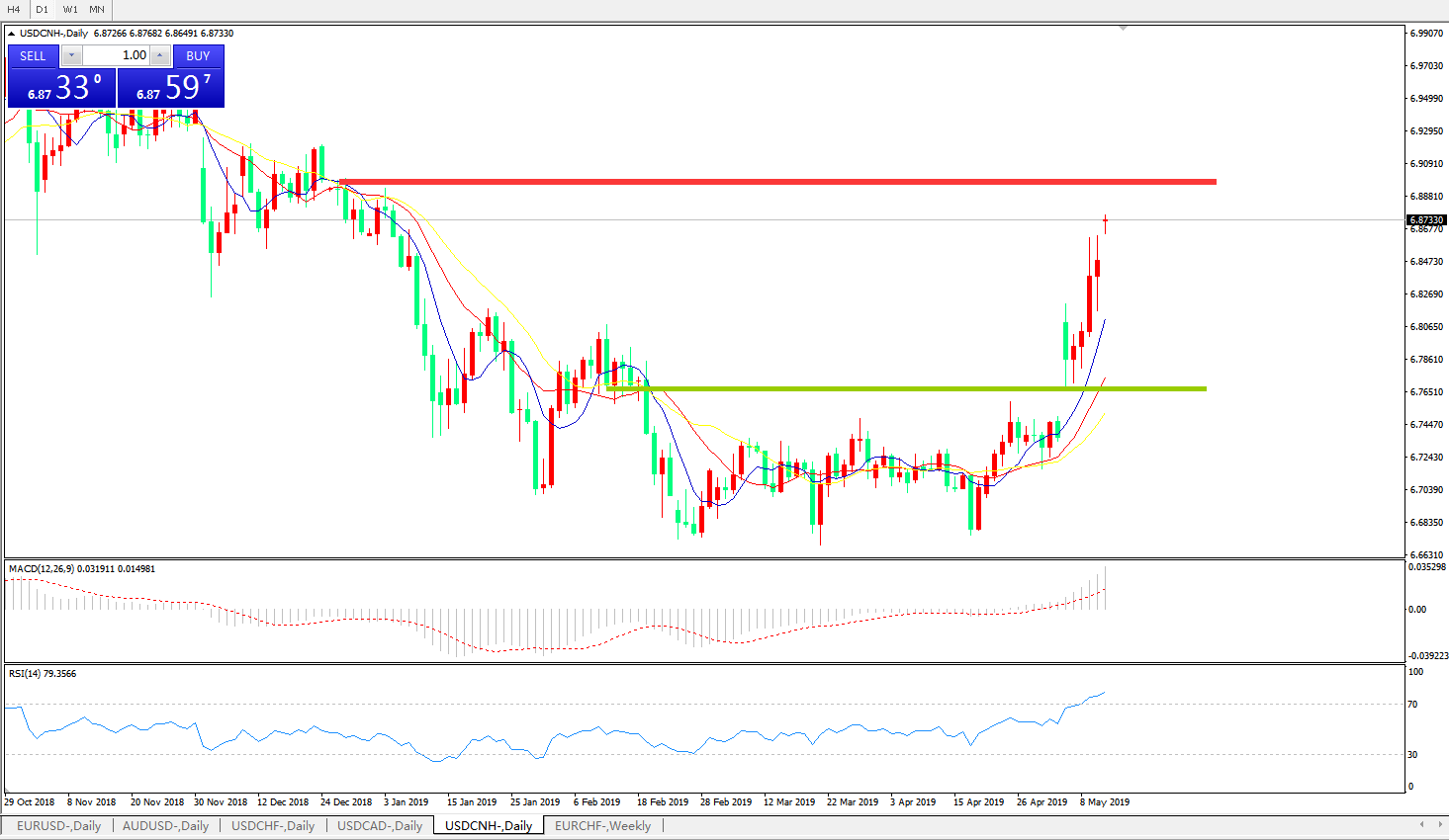 技术面简析:日线图均线呈有序多头排列看多,MACD上穿0轴且动能柱0轴上方快速放量,RSI急速走升,汇价企稳多空转折区域维持强力攻势,预计短期汇价回落整理需求逐步凸显,中期不排除有进一步上行空间,重点关注中美贸易谈判最新进展。
