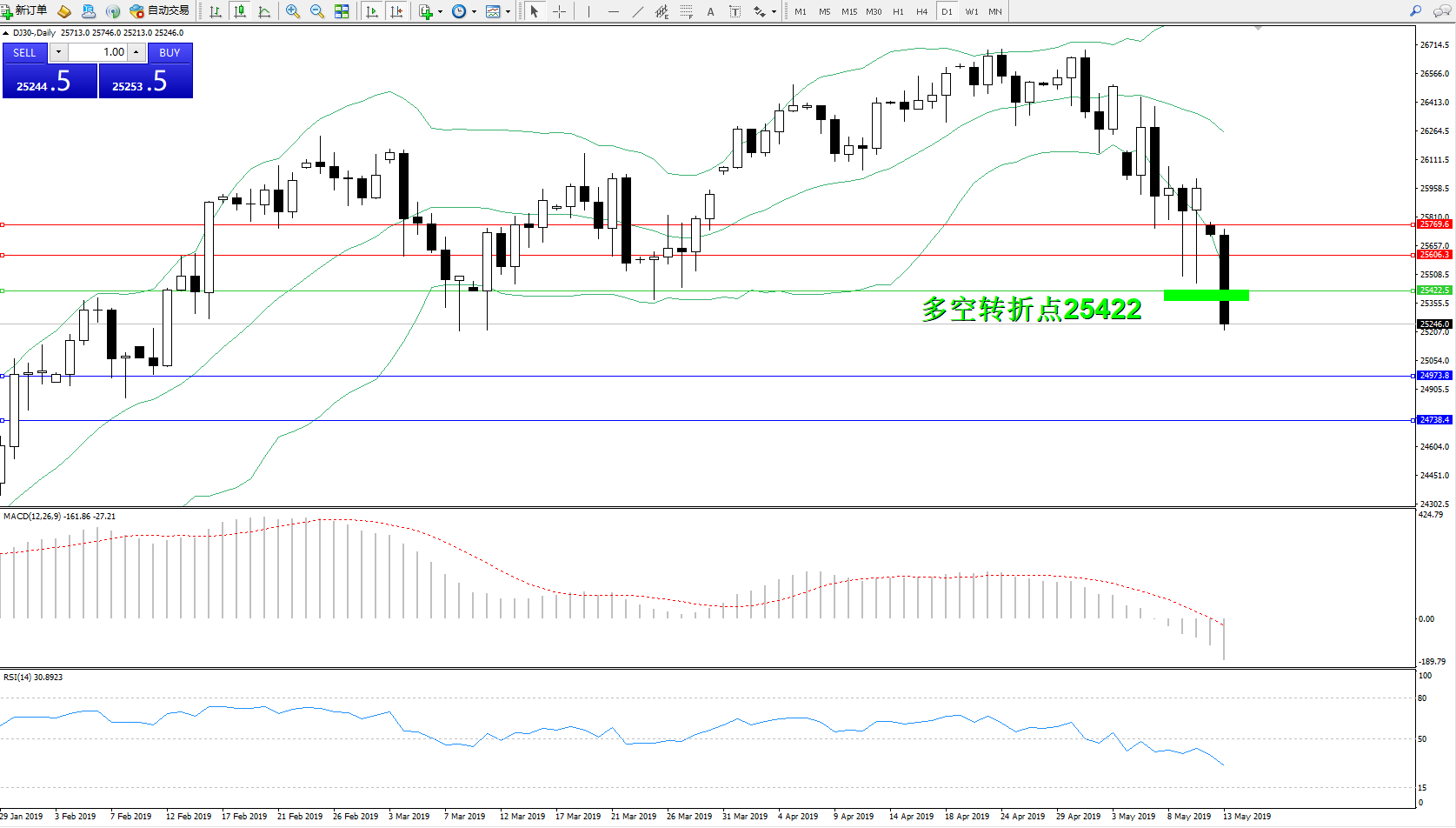 由于贸易局势紧张,市场担忧紧张局势进一步扩大,并影响全球经济。美股科技股集体重挫。道琼斯工业平均指数收跌617.38点,跌幅2.38%,报25324.99点。中国像以往一样快速报复是一个明确的信号,表明他们不会接受摆布,市场本期待中国更友好一些,甚至期待对中国产生些许自满情绪。有趣的是周末没有行动,而是在周一早上,刚好赶上市场开盘。