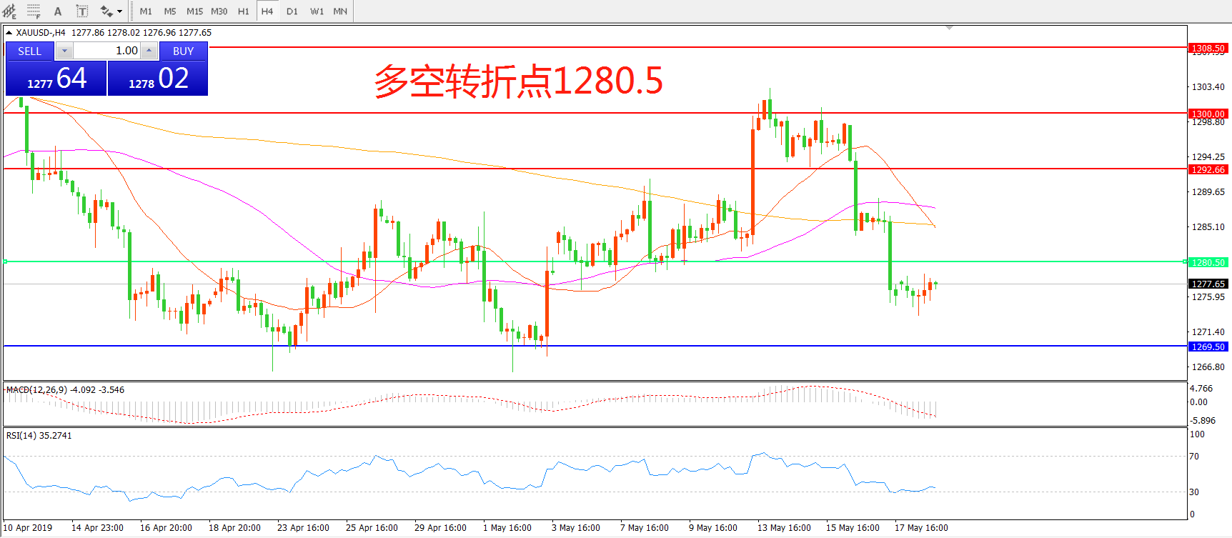 交易策略:在1280.50之下看跌,目标1269.50 1250.00