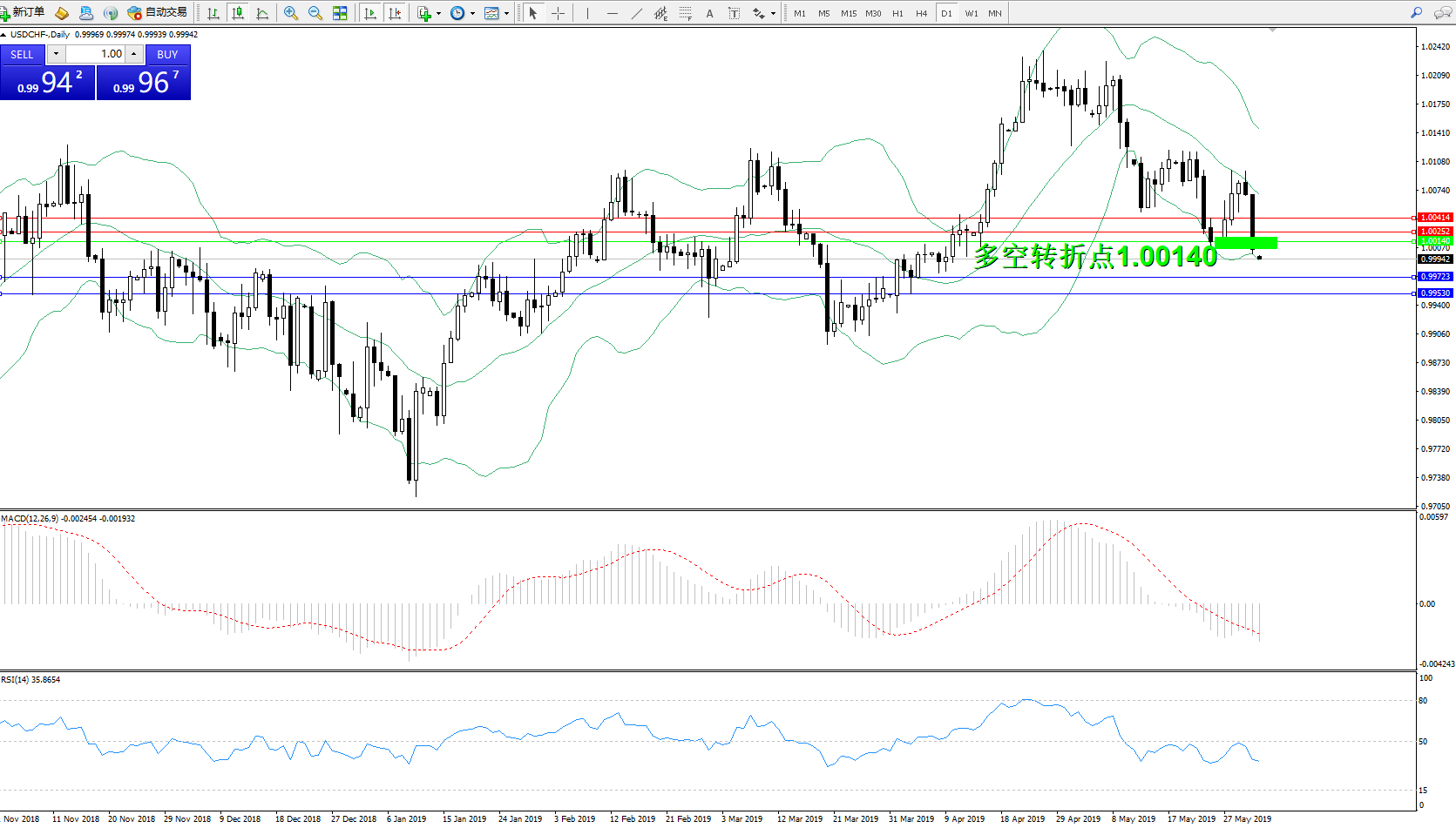 交易策略:1.00140下方看跌,目标0.99723、0.99530
