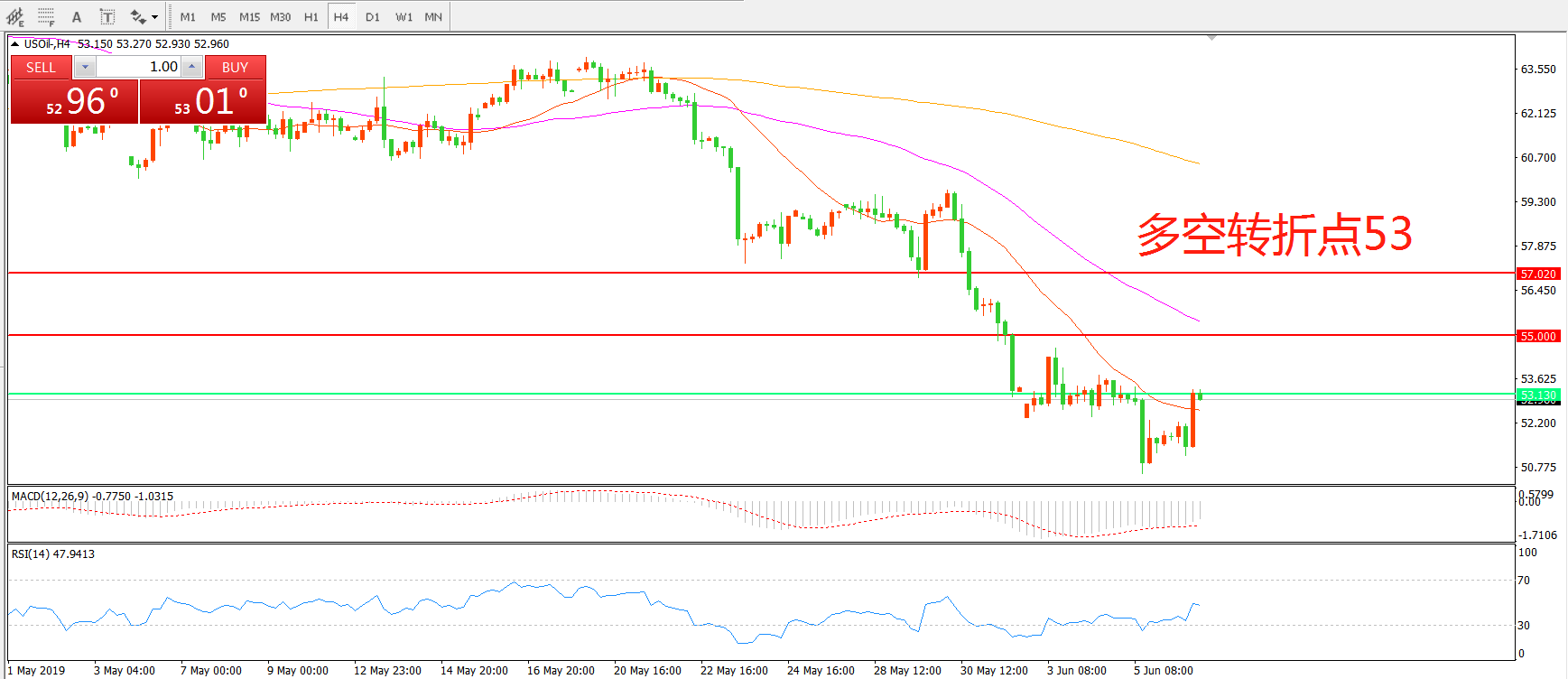 交易策略:在53.00之下看跌,目标50.00 46.00