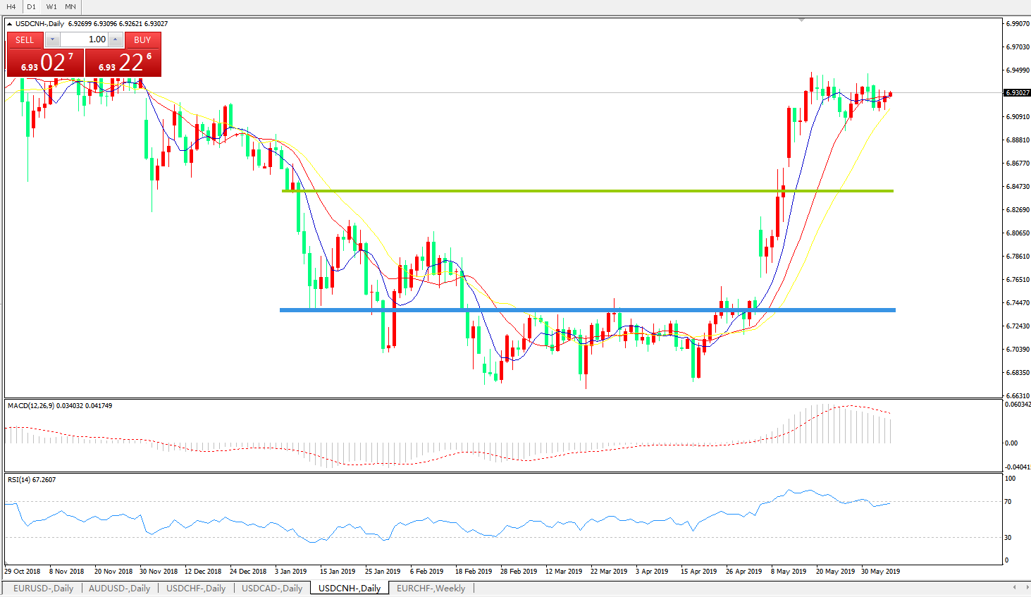 技术面简析日线图均线粘合但整体维持攻势,MACD在0轴上方运行但动能柱轻微缩量,RSI超买区域附近运行有再度走强迹象,汇价强力上攻后宽幅强势整理,预计短期汇价有下行回踩需求,中期重点关注中美贸易争端后续进展。