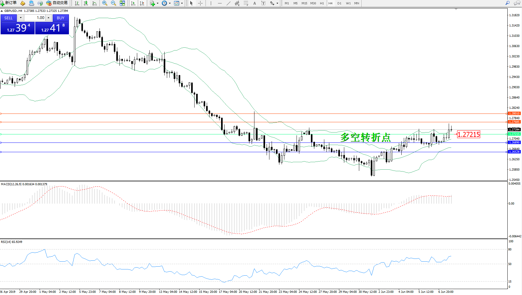 交易策略:1.27215上方看涨,目标1.27685、1.28010
