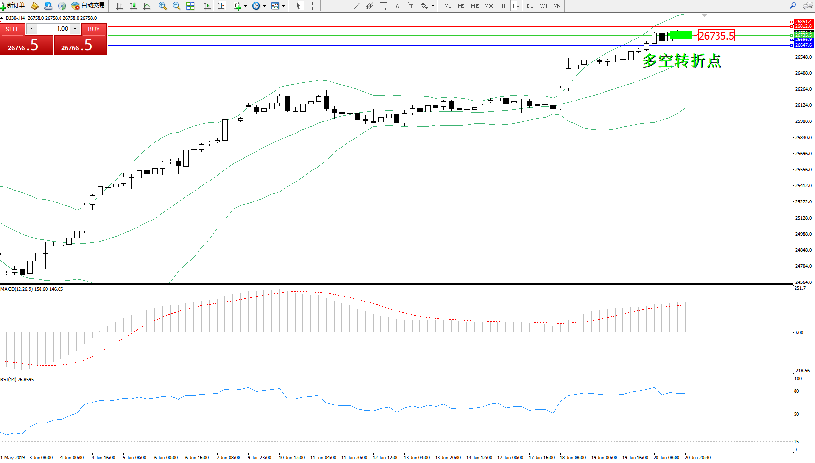 道琼斯指数收涨249.20点,涨幅0.94%,报26753.17点。美联储昨日暗示将在今年降息,提振了市场情绪。最早将于7月开始减息。美联储表示,由于贸易紧张局势加剧和对通胀疲弱的担忧日益加剧,它已准备好应对不断增长的全球和国内经济风险。鲍威尔打开了七月降息的大门,这很大程度上是板上钉钉的事情,但他没有为市场预期的其他减息打下基础。美联储本周加入欧洲央行和澳洲央行等全球主要央行的行列,表示需要更多的刺激政策,以维持经济增长。