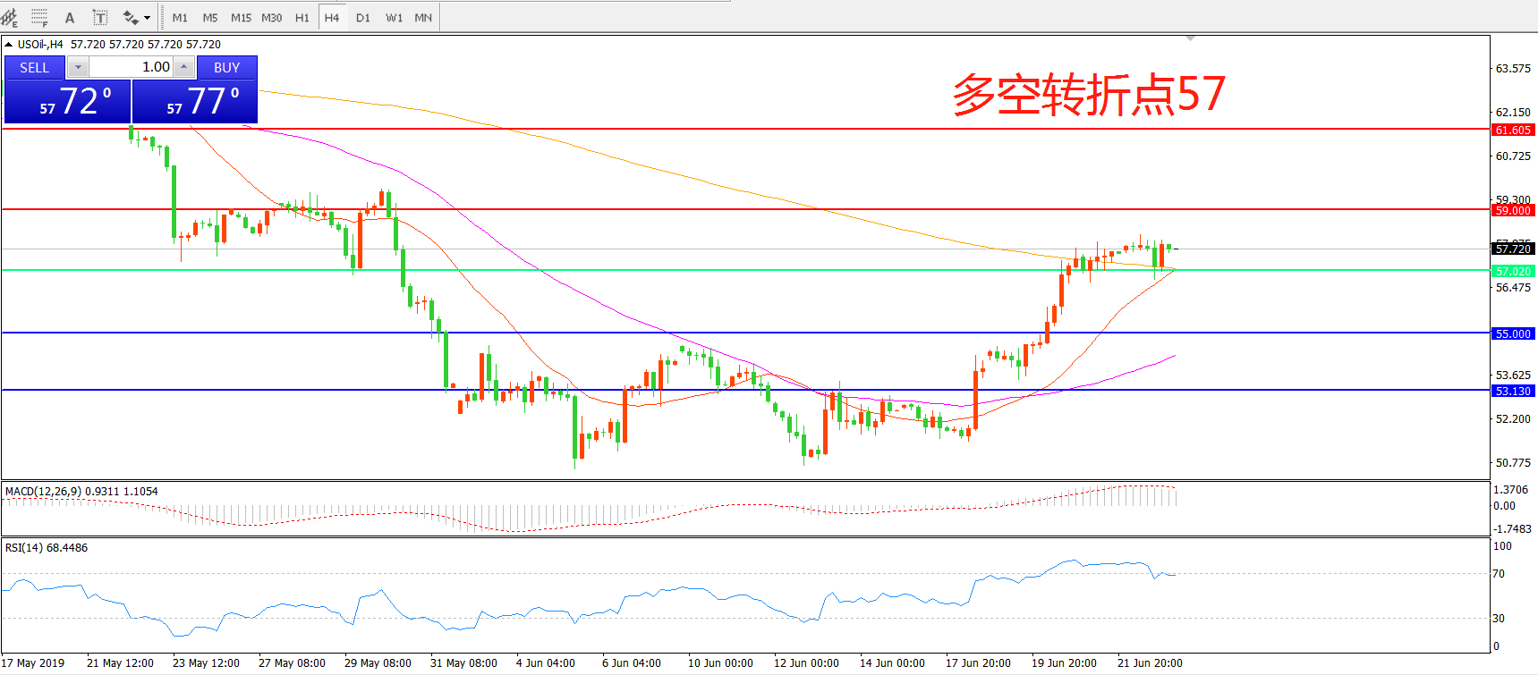 多空转折点:57.00