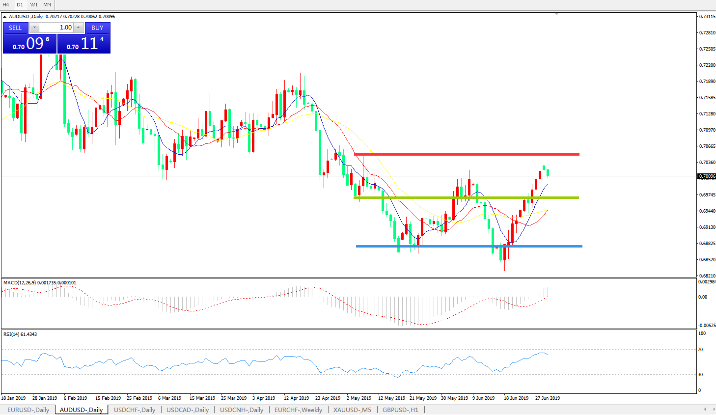 交易策略:0.6960上方看涨,目标0.7020、0.7100