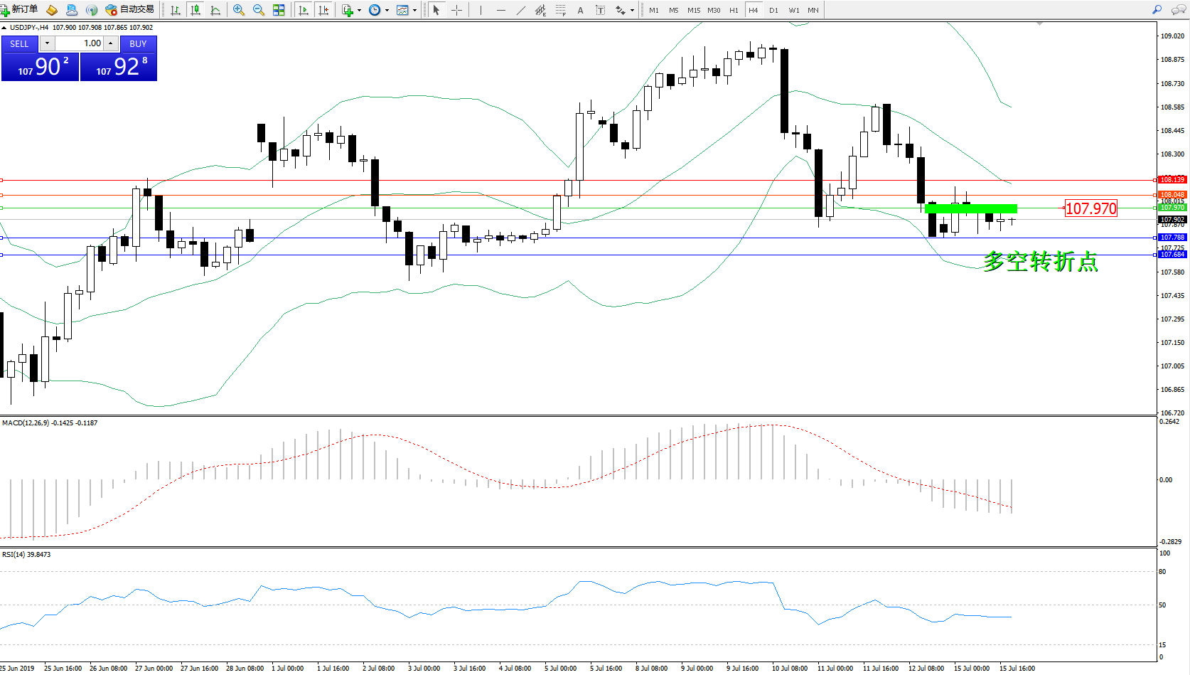 交易策略:107.970下方看跌,目标107.788、107.684