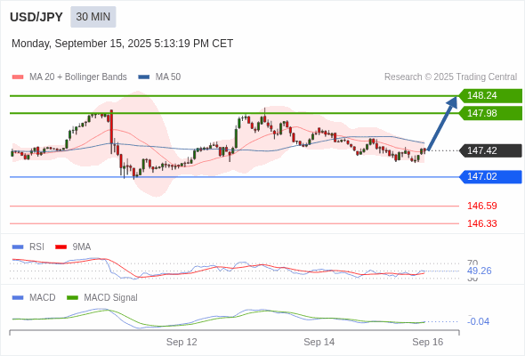首页 > > 美元/日元 当日内 : 有上涨的可能,目标价位定在 148.24 。