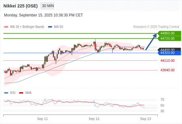 日经225股指期货 (OSE) 当日内: 超短线(当日内)支撑位在44320.00附近。