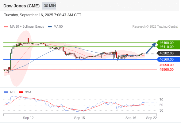 在 46160.00 之上,看涨,目标价位为 46410.00 ,然后为 46490.00 。