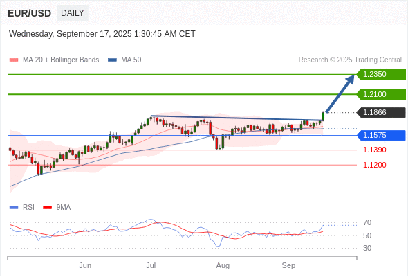 在 1.1575 之上,看涨,目标价位为 1.2100 ,然后为 1.2350 。