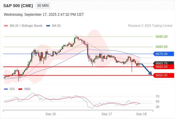 在 6675.00 之下,看跌,目标价位为 6660.00 ,然后为 6650.00 。