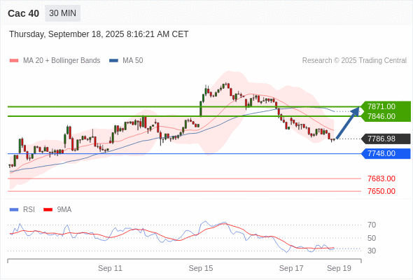 Cac 40 当日内: 超短线(当日内)支撑位在7748.00附近。