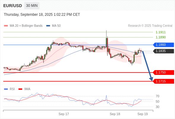 交易策略: 在 1.1860 之下,看跌,目标价位为 1.1750 ,然后为 1.1715 。