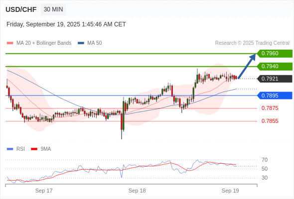 美元/瑞郎 当日内: 在0.7895之上,看涨。