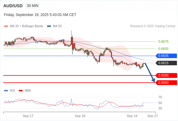 在 0.6635 之下,看跌,目标价位为 0.6580 ,然后为 0.6560 。
