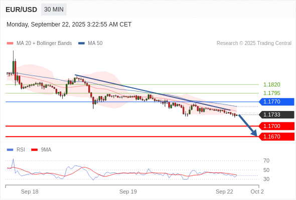 交易策略: 在 1.1770 之下,看跌,目标价位为 1.1700 ,然后为 1.1670 。