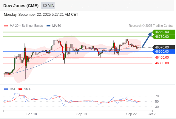 在 46500.00 之上,看涨,目标价位为 46750.00 ,然后为 46830.00 。