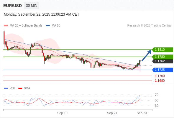 在 1.1725 之上,看涨,目标价位为 1.1780 ,然后为 1.1810 。