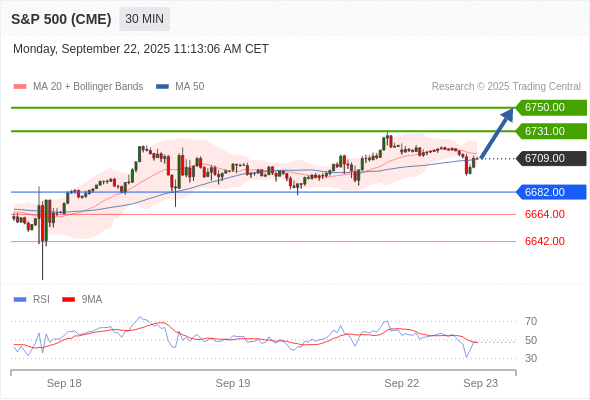 在 6682.00 之上,看涨,目标价位为 6731.00 ,然后为 6750.00 。