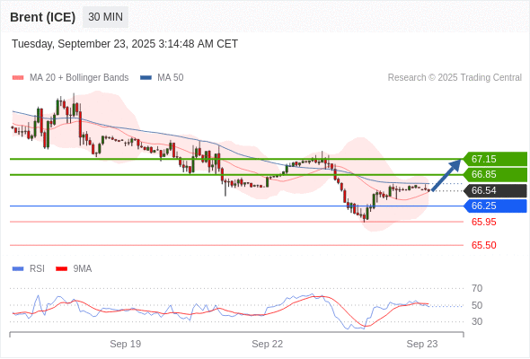 在 66.25 之上,看涨,目标价位为 66.85 ,然后为 67.15 。