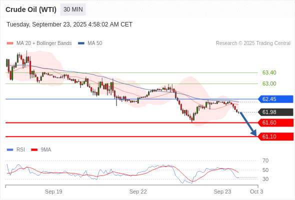 在 62.45 之下,看跌,目标价位为 61.60 ,然后为 61.10 。