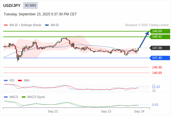 美元/日元 当日内 : 看涨,当 147.40 为支撑位。