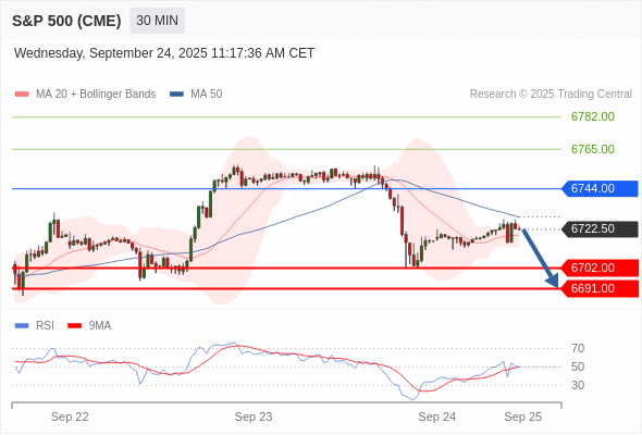 在 6744.00 之下,看跌,目标价位为 6702.00 ,然后为 6691.00 。