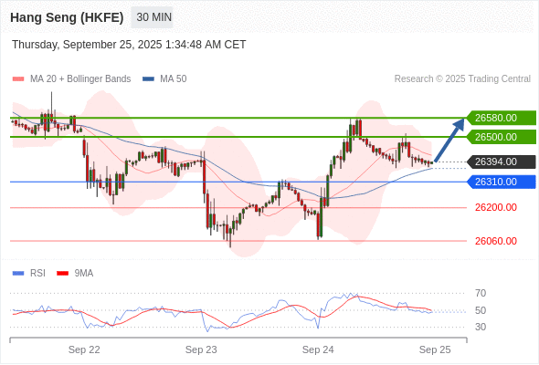 香港恒生指数期货 当日内: 在26310.00之上,看涨。