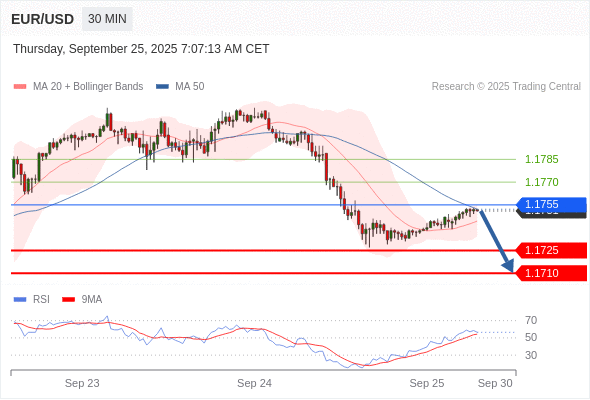 交易策略: 在 1.1755 之下,看跌,目标价位为 1.1725 ,然后为 1.1710 。