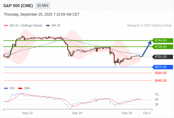 在 6675.00 之上,看涨,目标价位为 6728.00 ,然后为 6744.00 。