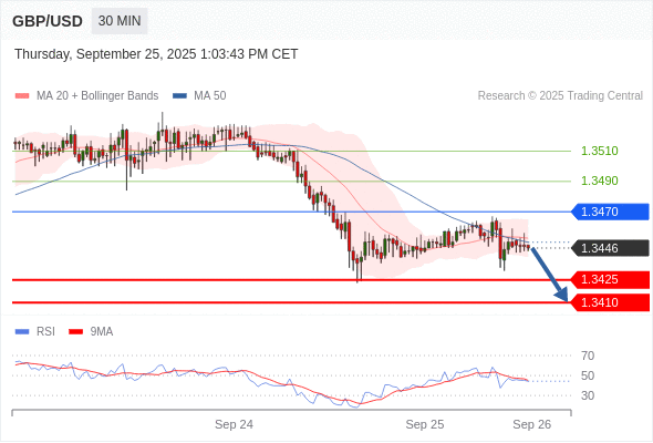 在 1.3470 之下,看跌,目标价位为 1.3425 ,然后为 1.3410 。