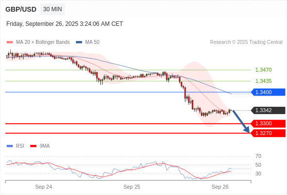 交易策略: 在 1.3400 之下,看跌,目标价位为 1.3300 ,然后为 1.3270 。