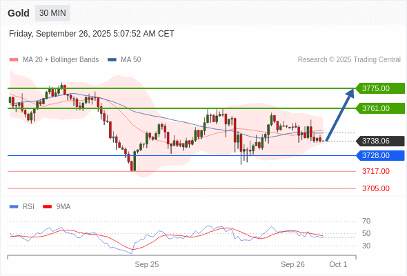 在 3728.00 之上,看涨,目标价位为 3761.00 ,然后为 3775.00 。