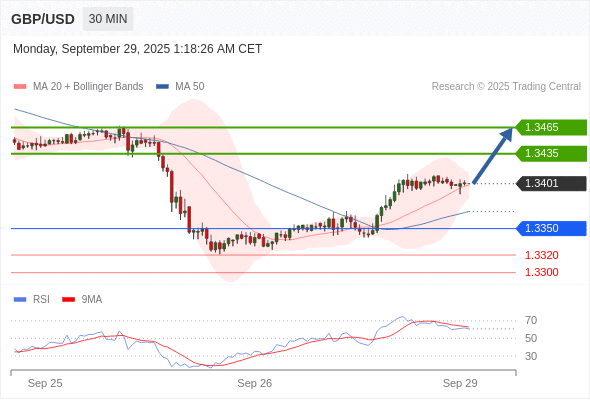 在 1.3350 之上,看涨,目标价位为 1.3435 ,然后为 1.3465 。