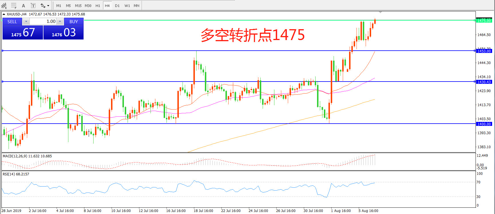 交易策略:在1475.00之上看涨,目标1500.00 1530.00