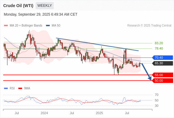 交易策略: 在 70.40 之下,看跌,目标价位为 55.00 ,然后为 50.00 。