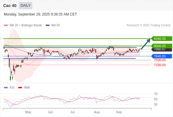 在 7640.00 之上,看涨,目标价位为 8000.00 ,然后为 8260.00 。
