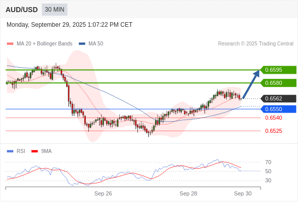 在 0.6550 之上,看涨,目标价位为 0.6580 ,然后为 0.6595 。