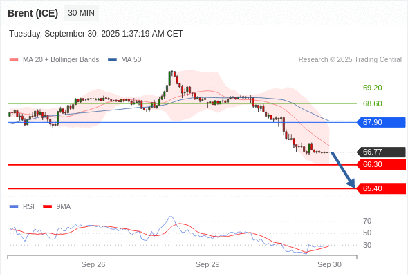 在 67.90 之下,看跌,目标价位为 66.30 ,然后为 65.40 。