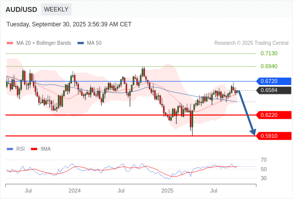 在 0.6720 之下,看跌,目标价位为 0.6220 ,然后为 0.5910 。